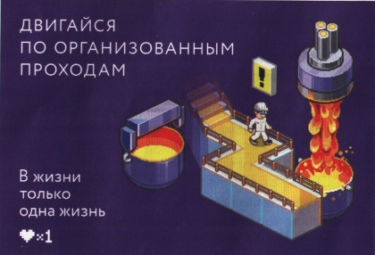 После утверждения креативной концепции «В жизни только одна жизнь» была разработана серия красочных плакатов. Они доступно отражают наиболее распространенные ситуации, связанные с нарушениями правил охраны труда. Рисунки выполнены в графическом стиле 8-битной компьютерной игры, главный герой которой – металлург, демонстрирующий разумное поведение на производственной площадке. По задумке плакаты призваны выработать у трубников «персональную нетерпимость к опасному поведению» и напомнить, что в реальности у человека только одна жизнь. Графические работы размещены на основных производственных площадках ЧТПЗ и Первоуральского новотрубного завода.