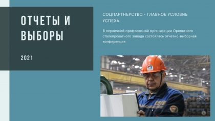В первичной профсоюзной организации Орловского сталепрокатного завода состоялась отчетно-выборная конференция, в работе которой приняли участие 41 делегат, руководители подразделений, начальник управления по персоналу и социальным вопросам Елена Дутова.