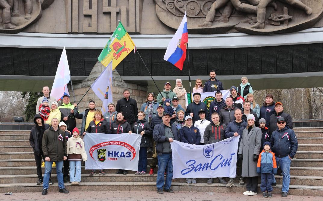 Активисты первичных профорганизаций и аппарата Кемеровской ТПО ГМПР проехали по Новокузнецку с флагами и почтили память заводчан, внесших вклад в Победу и развитие промышленных предприятий.