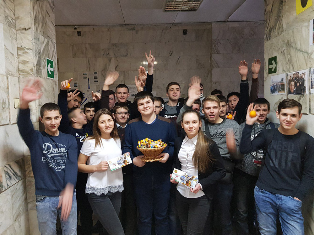 В честь Дня студента в каждом из корпусов Кузнецкого индустриального техникума прошли "Весёлые перемены": на каждой перемене в фойе звучали музыка, поздравления для студентов и обязательно были сладкие угощения и мандарины.