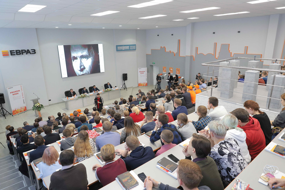 Неделя высоких технологий «ЕВРАЗ HI-TECH СибГИУ #BARDIN_WEEK» приурочена к 135-летию академика Ивана Павловича Бардина. В течение пяти дней на базе университета прошла выставка роботехники, серия мастер-классов, научных квестов для детей и подростков, демонстрационный конкурс профессионального мастерства по методике WorldSkills. Представители Совета молодых специалистов ЕВРАЗ ЗСМК посвятили студентов профильных специальностей СибГИУ в металлурги. В обновленной поточной аудитории 22 лучшим студентам университета были вручены корпоративные стипендии ЕВРАЗа.