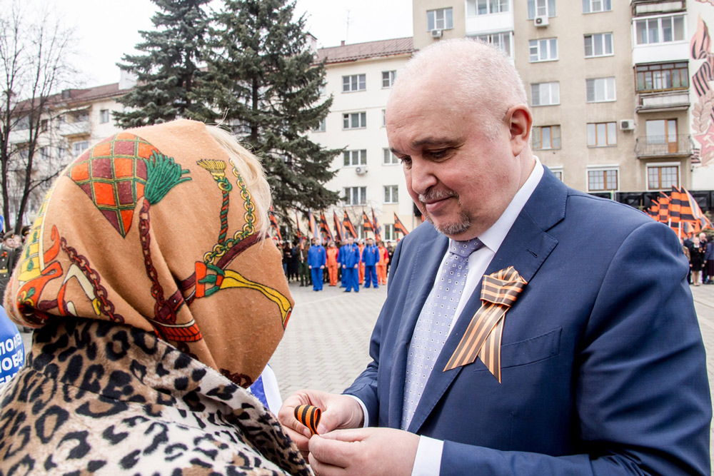 В Кемерове, у Памятника воинам-кузбассовцам, павшим за Родину в годы Великой Отечественной войны, губернатор Сергей Цивилёв дал торжественный старт Всероссийской акции «Георгиевская лента».