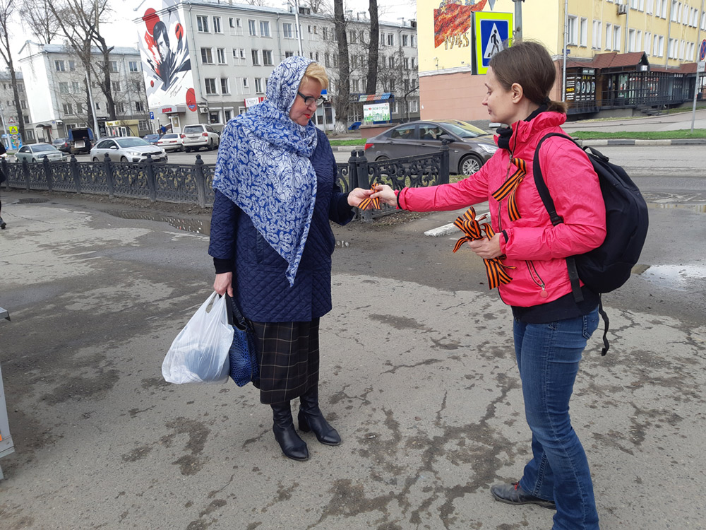 Студенты раздавали жителям и гостям города георгиевские ленточки – символ памяти бессмертного подвига наших солдат, знак уважения к ветеранам и гордости за Великую Победу.
