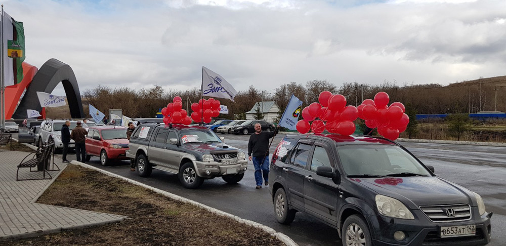 С флагами ГМПР, ППО «ЗапСиб»,Электропрофсоюза (молодёжь этой организации тоже подключилась к акции) машины стартовали от стелы Новокузнецка. Колонна из 24 машин прошествовала по трём районам города – Куйбышевскому, Центральному и Кузнецкому, финишировав возле Сада алюминщиков, где были встречены организаторами профсоюзного праздника.