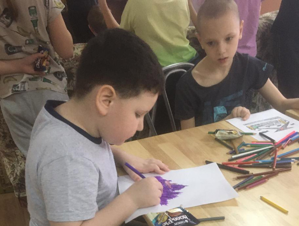 Студенты заранее приготовили трафареты рисунков с изображением видов блокадного Ленинграда, чтобы ребята могли просто их раскрасить. Дети взялись за дело с большим увлечением, и пусть картинки получились не с идеальной прорисовкой, но в них вложена частичка души. Всем детям студенты вручили Георгиевские ленточки. А открытки будут переданы пожилым людям, пережившим когда-то это страшное время.