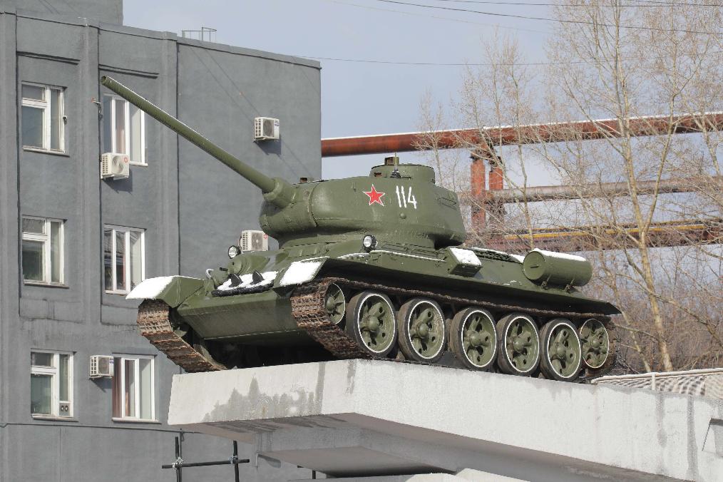 Танк Т-34, изготовленный из кузнецкой брони, – памятник трудовому подвигу рабочих Кузнецкого металлургического комбината в годы Великой Отечественной войны. Боевая машина образца 1944 года с номером 114 на борту с 85-миллиметровой пушкой прошла свой героический путь до Берлина. Во время боев танк потерял два экипажа. После войны Т-34 служил в советских танковых частях в Германии и Чехословакии, а затем до 1972 года был в составе лучшего танкового подразделения Сибирского военного округа. 9 мая 1973 года танк был торжественно установлен на постамент возле заводоуправления КМК в Новокузнецке. Вместе с Музеем боевой и трудовой Славы кузнецких металлургов он образует мемориальный комплекс на Площади Побед.