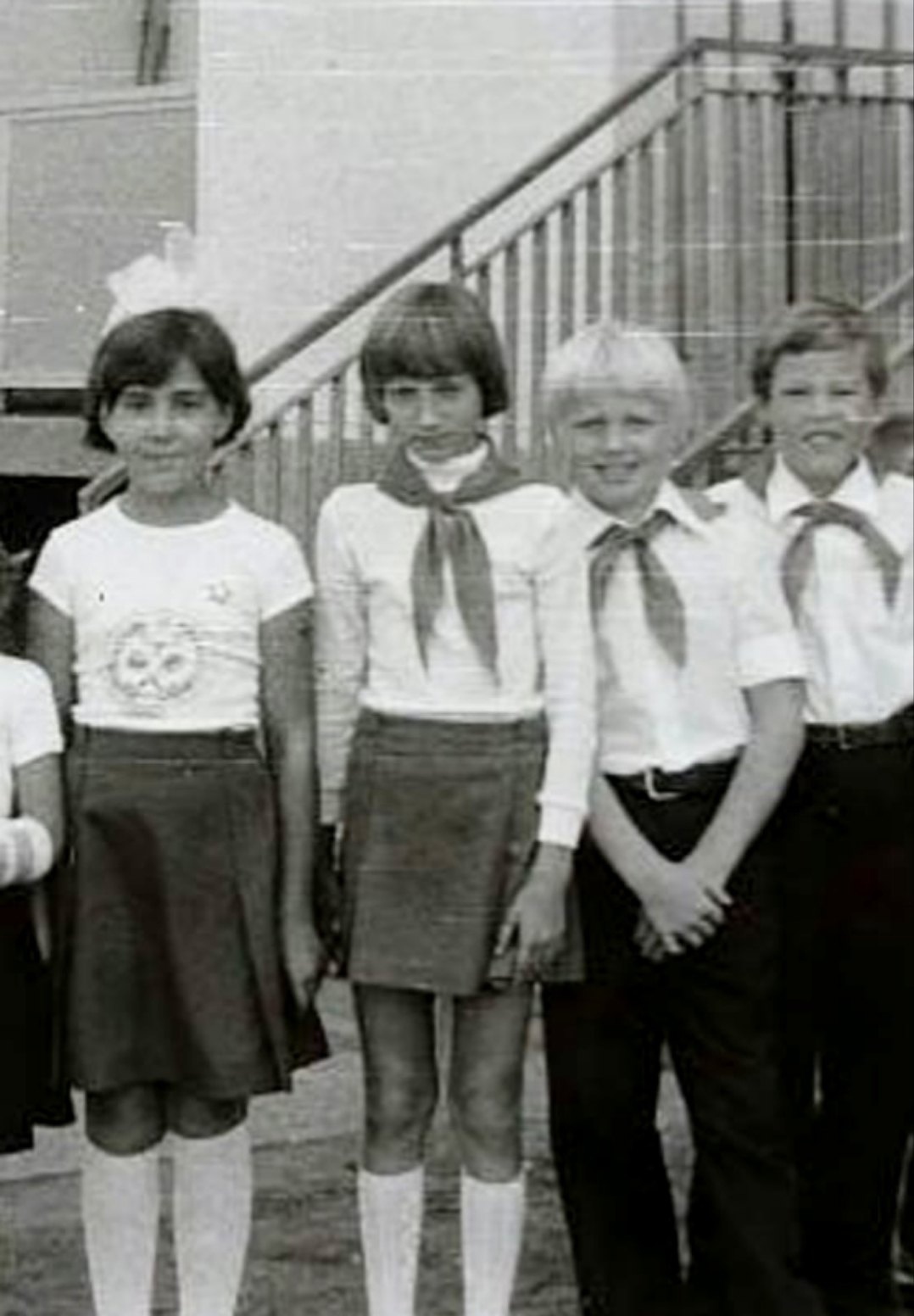 : - «Свое первое сентября в школе помню хорошо, был слишком эмоциональный день. Косички, шикарные белые банты, новое школьное платье, белый воздушный фартук. Моя первая линейку. Я так волновалась, что мне даже стало плохо и пришлось вызвать скорую помощь. И мой первый день в школе закончился больницей. Но я все равно вспоминаю 1 сентября 76 года как один из лучших дней в своей жизни. Когда мои дети пошли в школу, я испытала похожее волнение и не смогла сдержать слез».