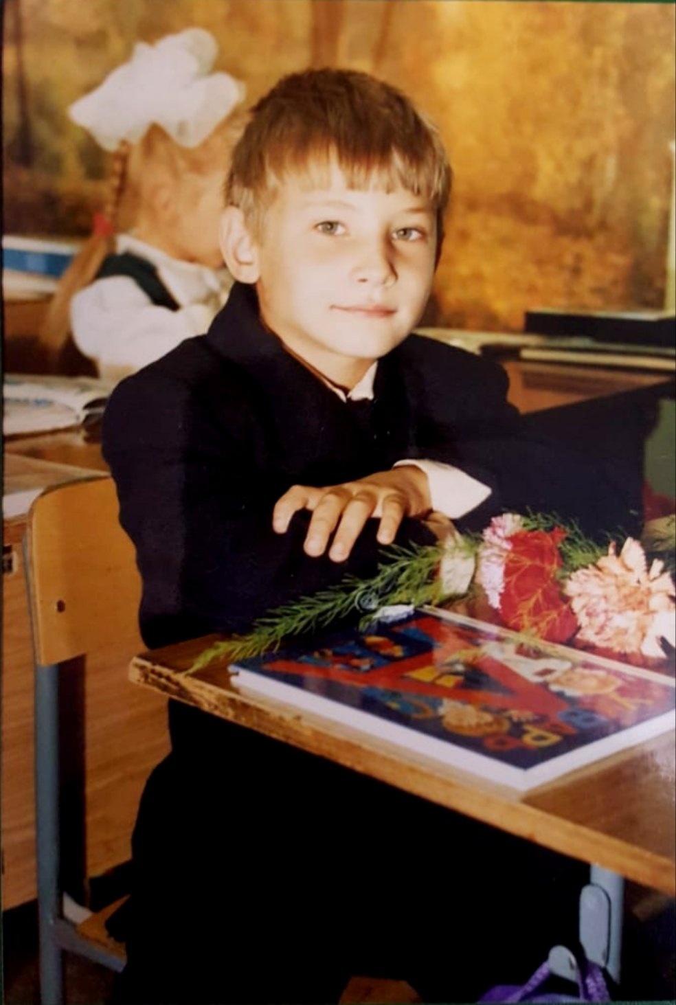 : - «До сих пор помню свое первое сентября, как волновался и каким важным себя чувствовал, взрослым. В школу шел с большим желанием, хорошим настроением, навстречу новым приключениям. На торжественной линейки были все такие красивые, правда до дома такие дошли не все, футбол никто не отменял.