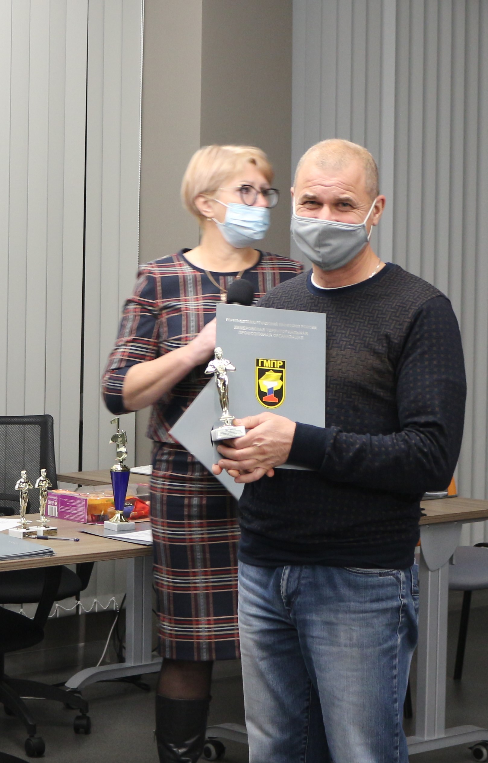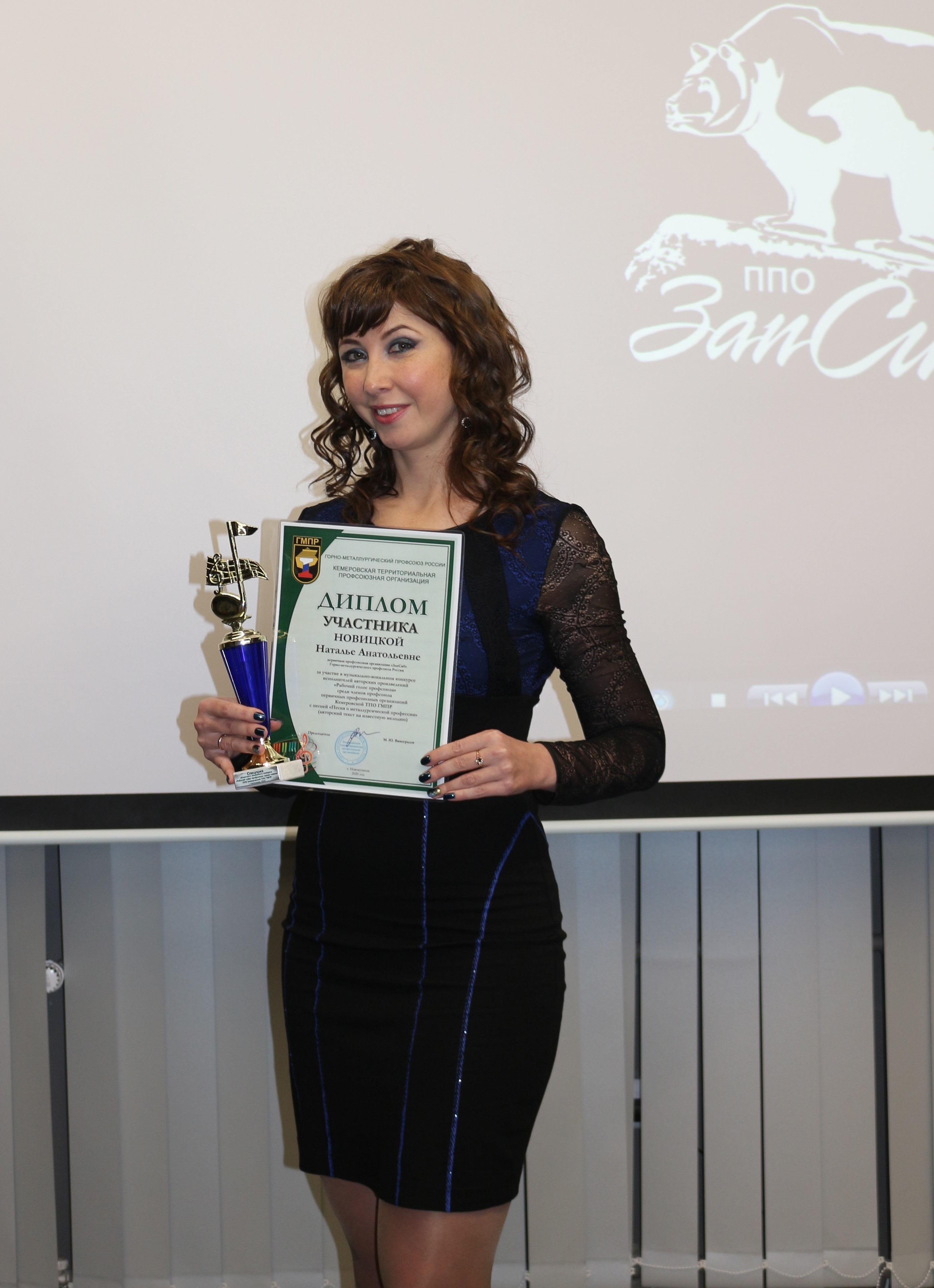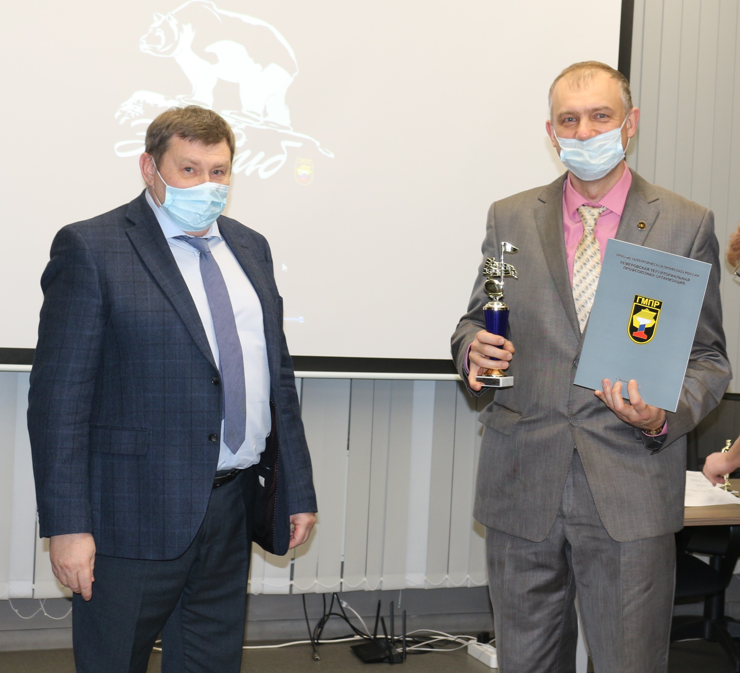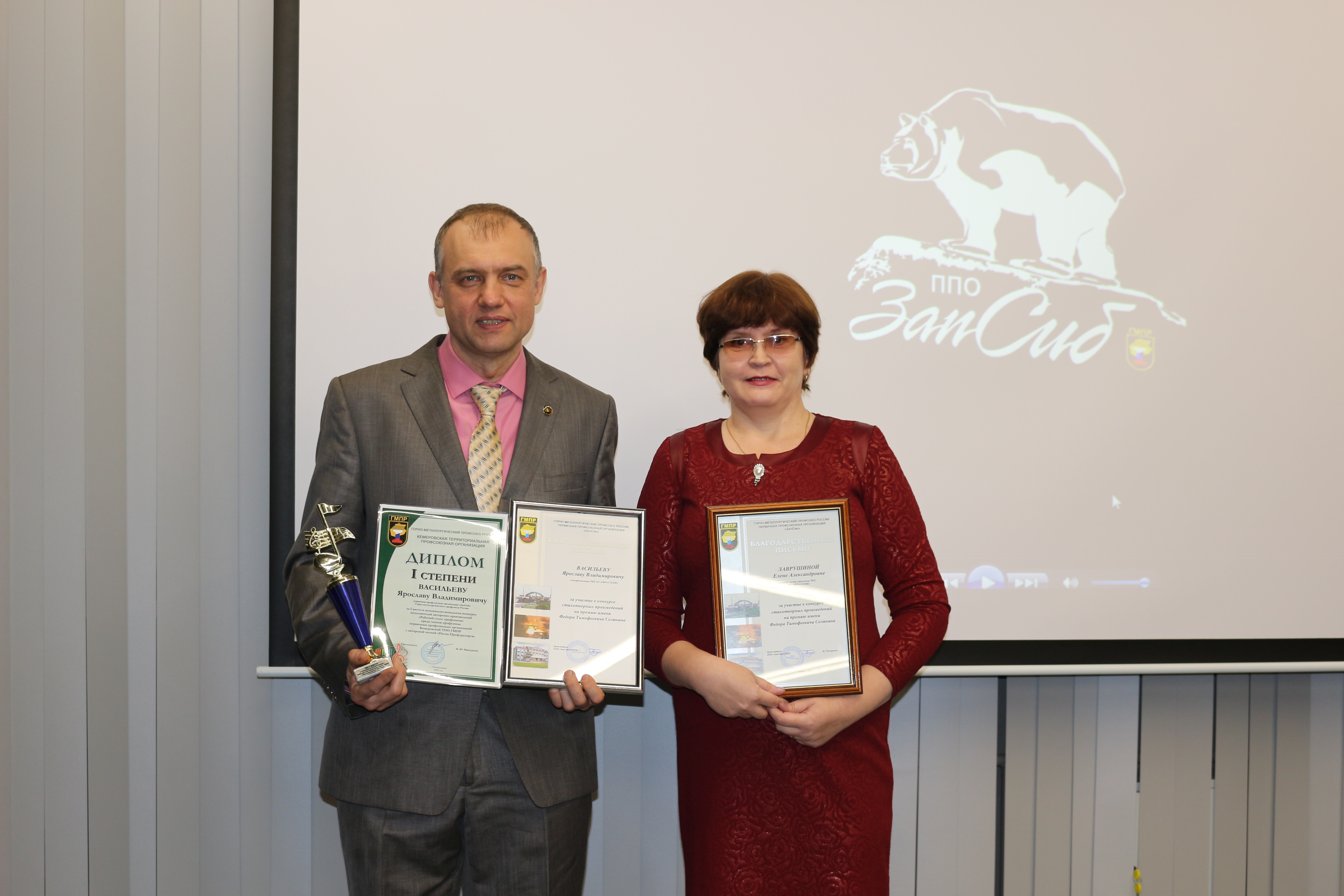 За участие в конкурсе профсоюзных агитационных видеороликов «Мотивация профсоюзного членства» и конкурса вокального исполнения авторских произведений «Рабочий голос профсоюза» Дипломами и Кубками участников наградил Председатель Кемеровской Территориальной профсоюзной организации ГМПР Виноградов Михаил Юрьевич.