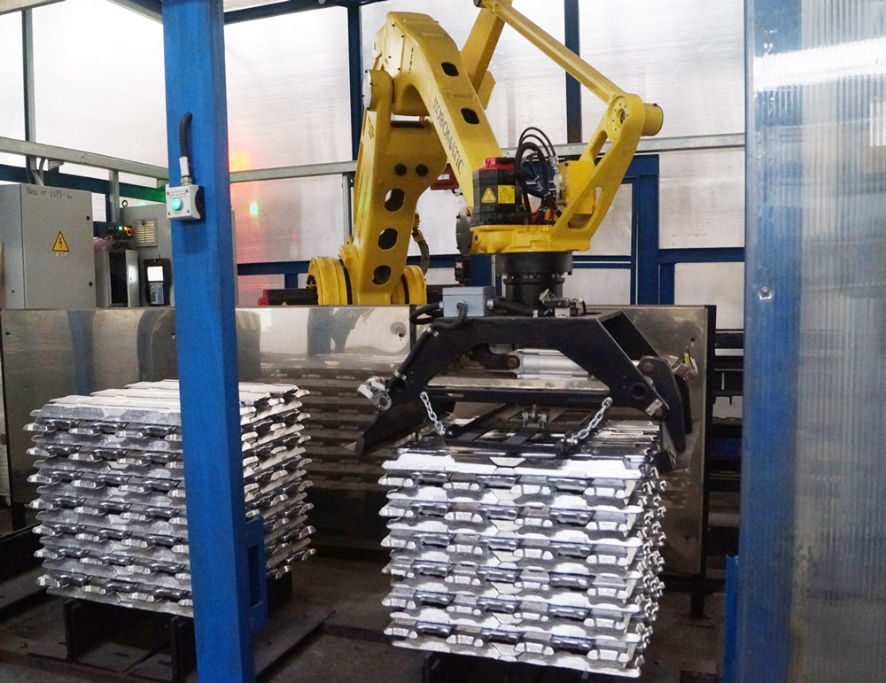 Применение в литейном отделении второго робота позволит улучшить плотность и геометрию укладки слитков в пакете, что приведет к общему повышению качества упаковки продукции.