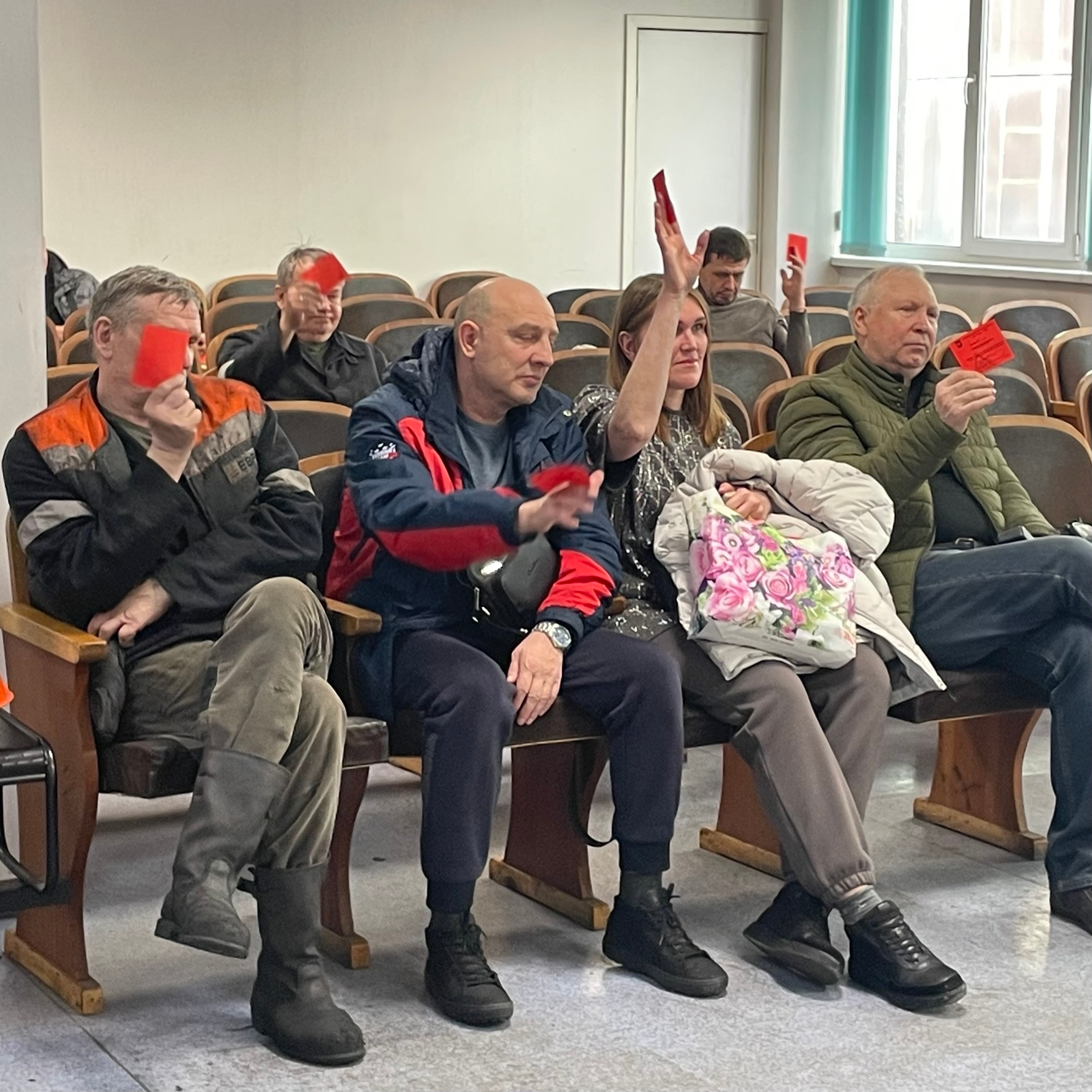 По итогам конференции Денис Зиновьев был вновь избран на должность председателя СПО сортопрокатного цеха.